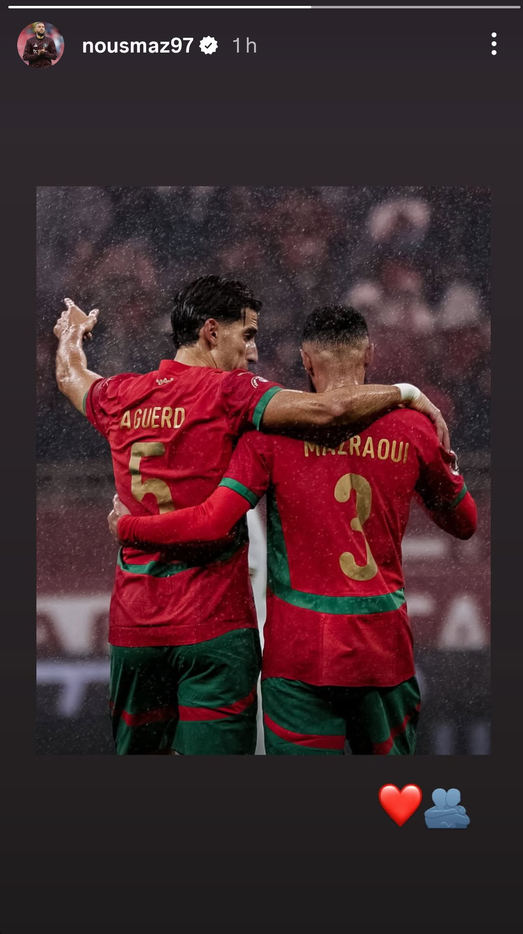 وانتظر مدافع مانشستر يونايتد يوما كاملا قبل الخروج بتوضيح رسمي، حيث نشر عبر حسابه الرسمي على موقع التواصل الاجتماعي إنستغرام صورة تجمعه بزميله نايف أكرد، مرفقة برسالة تؤكد وحدة المجموعة وتماسكها، مشددا على أن الهدف المشترك يبقى الدفاع عن قميص المنتخب الوطني.